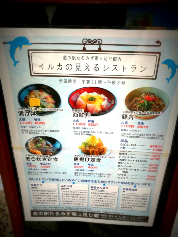 食堂で海と桜島とイルカ見ながら