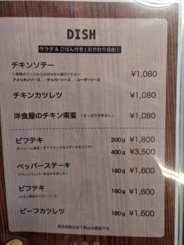 久留米の洋食屋さん「にしむら 」のメニュー