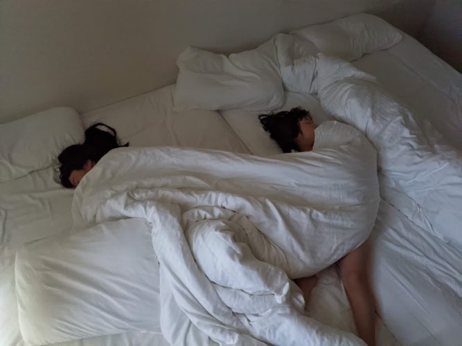 2階のダブルベッド×2で寝る娘たち
